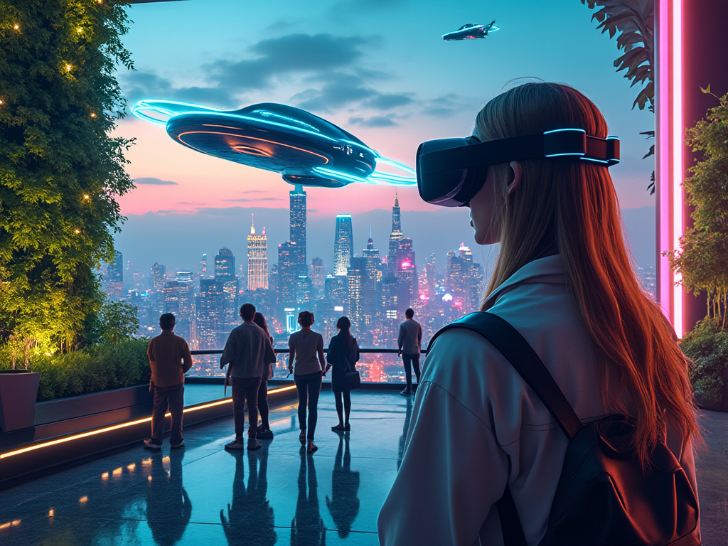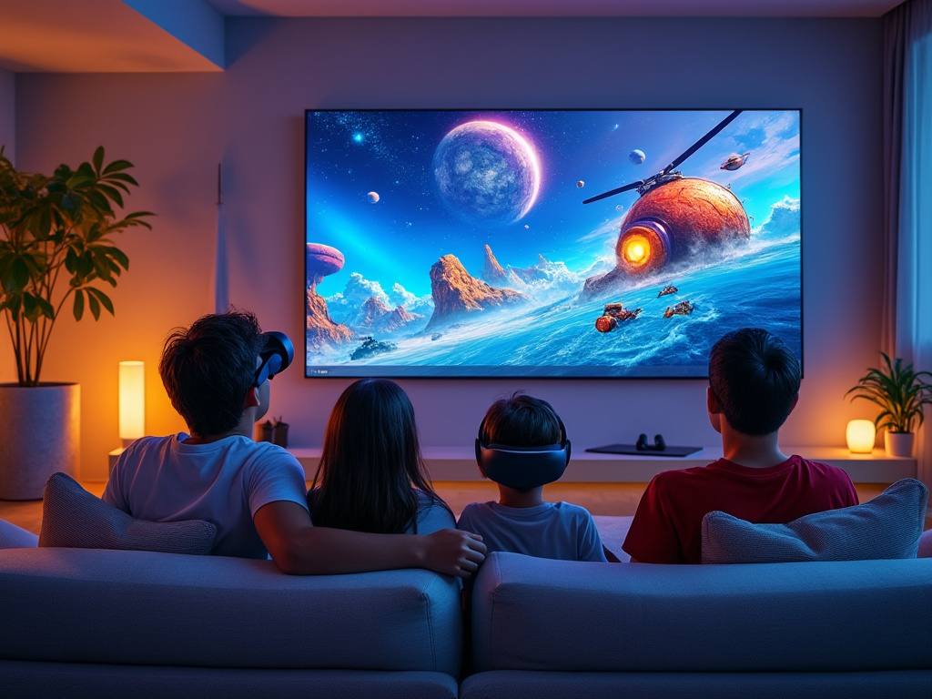 Malamnya, Raka pulang untuk menghabiskan waktu bersama keluarga. Ruang keluarga mereka dilengkapi layar interaktif besar, di mana hiburan dipersonalisasi oleh AI sesuai suasana hati. Bersama anak-anak, ia berpetualang dalam dunia virtual menggunakan teknologi VR, menjelajahi planet-planet fiksi yang terasa begitu nyata.